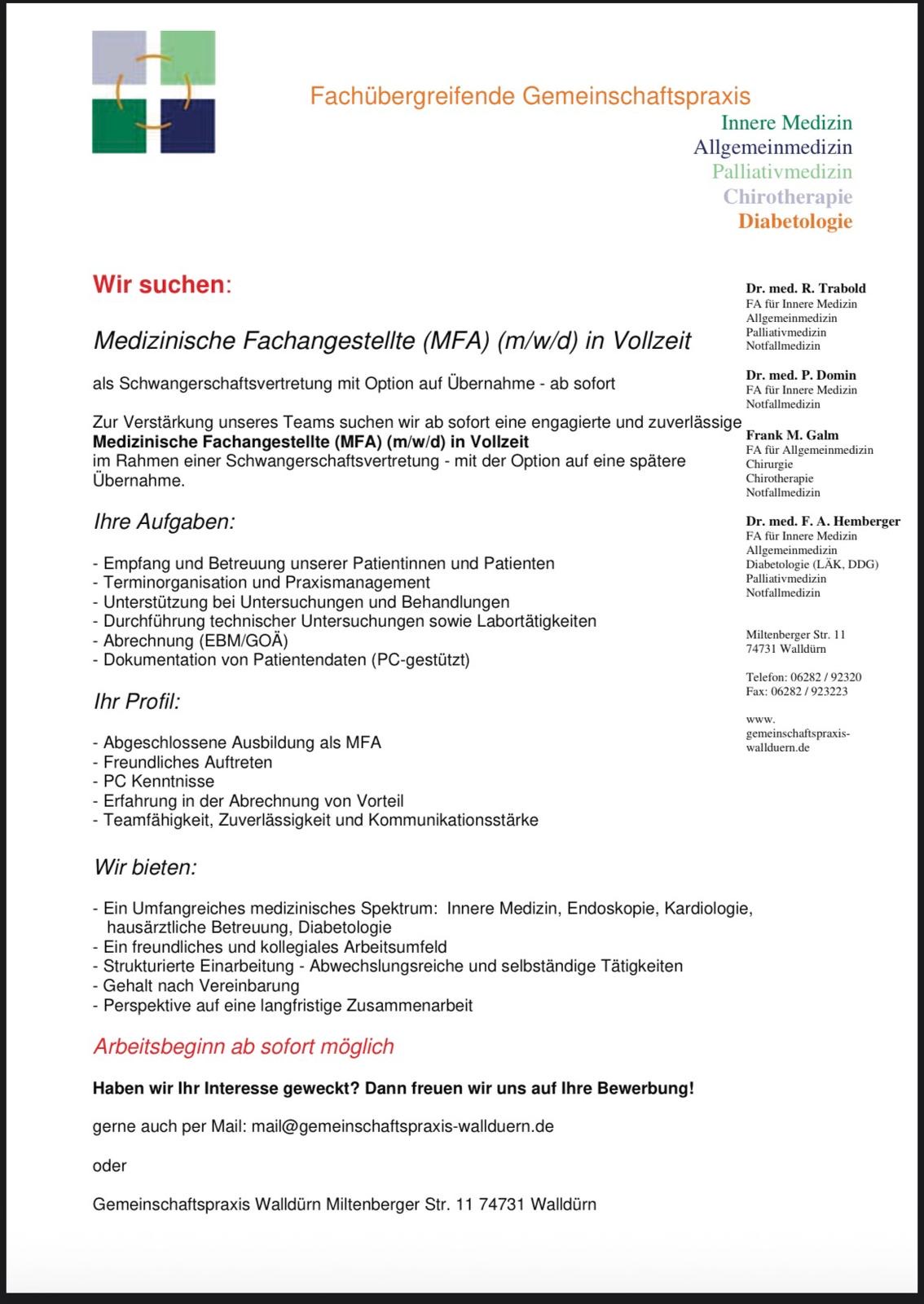 Ab dem 01.07.25 wird Dr. Frank Hemberger das Team der Gemeinschaftspraxis verstärken. Er bringt fundierte Weiterbildungen in den Bereichen Innere Medizin, Allgemeinmedizin, Diabetologie und Palliativmedizin mit.
